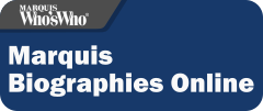 ![]() | Marquis Biographies Online | Features 1.5 million biographies from twenty-four Marquis Who's Who titles since 1985, plus historical biographies from Who Was Who in America covering the period 1607 to 1985. | Biographies History |